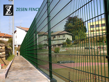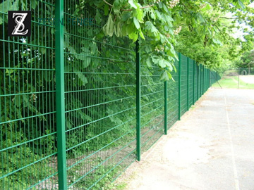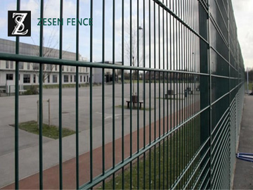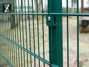 Double Wire Fencing, with its flat panel, using double horizongtal wires and a vertical wire to form a rigid mesh. The surface treatment is coated by hot dipped galvanization or electric galvanization + polyester powder. Zesen Double Wire Fencing’s fitting is a RHS post or a peach post. Double Wire Fencing are popular in German market, using for parks, industrial sites, residents etc.