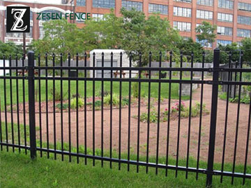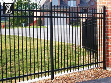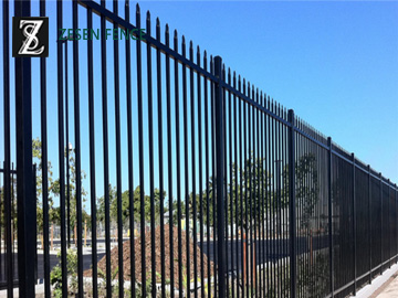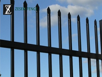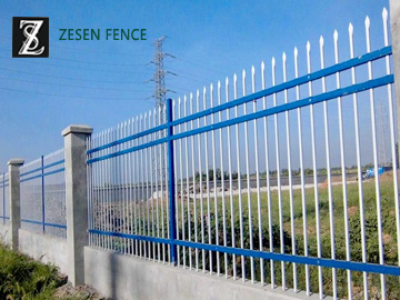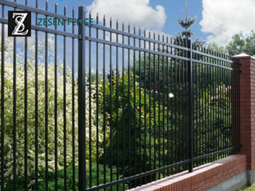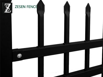 Picket Fence, as a decorative fence, using the vertical steel pales, the pickets and horizontal rails to form the fence. The surface treatment of Zesen Picket Fence is coated by galvanization + polyester powder or hot dipped galvanization. The fitting of Picket Fence is a square post. Picket Fence is particularly used in the United States, with its Decoration function it is popular in most countries and areas.